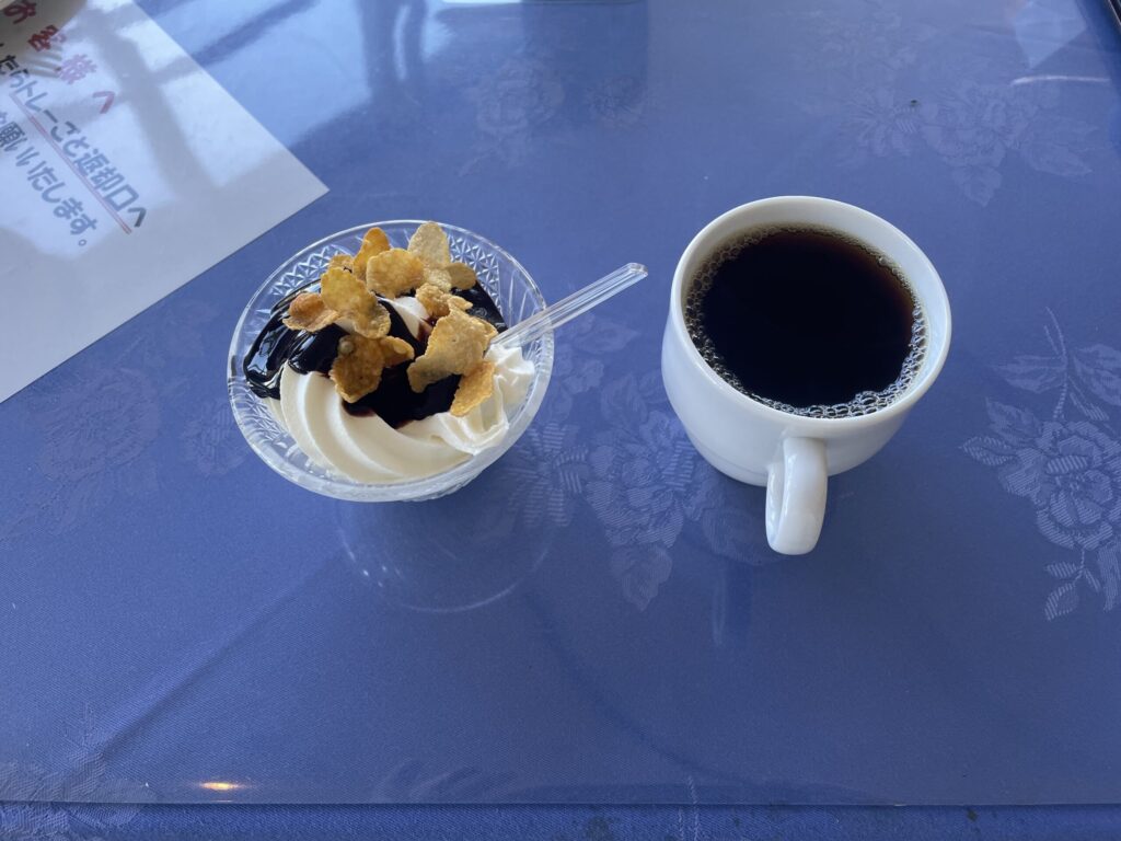 デザートは、ソフトクリームとホットコーヒー